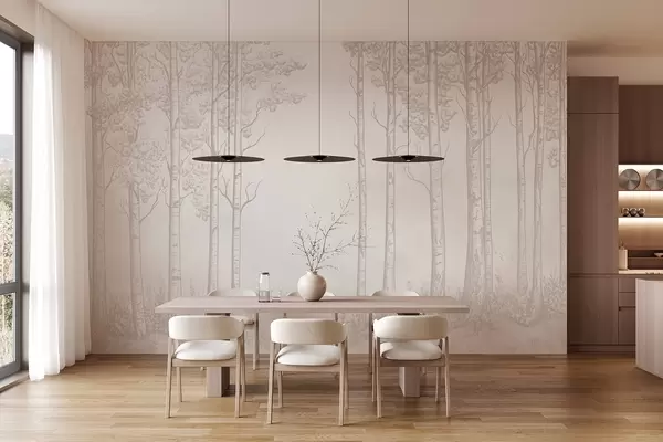 Fototapet Pădure cu mesteacăn, minimalism, natură, paletă de culori bej Nr. w04009v3