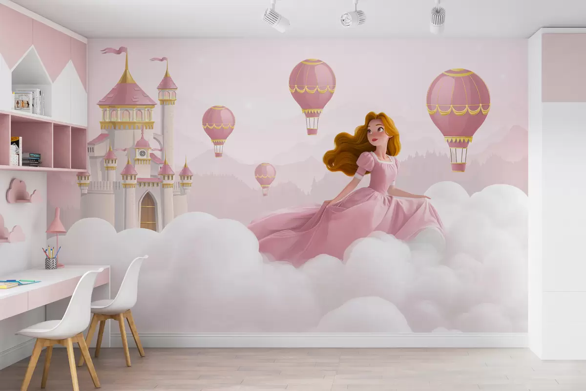 Fototapet Prințesa printre nori pe fundalul peisajului cu castelul Nr. w04015v1