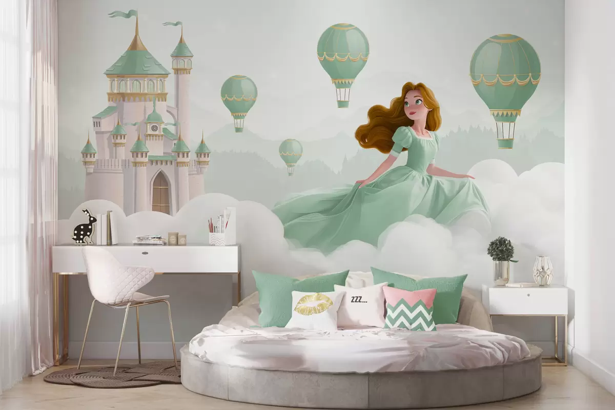 Fototapet Prințesa printre nori pe fundalul peisajului cu castelul Nr. w04015v2