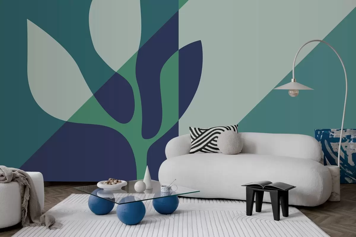 Fototapet plantă grafică abstractă pe fundal de geometrie în tonuri de albastru Nr. w04028v1