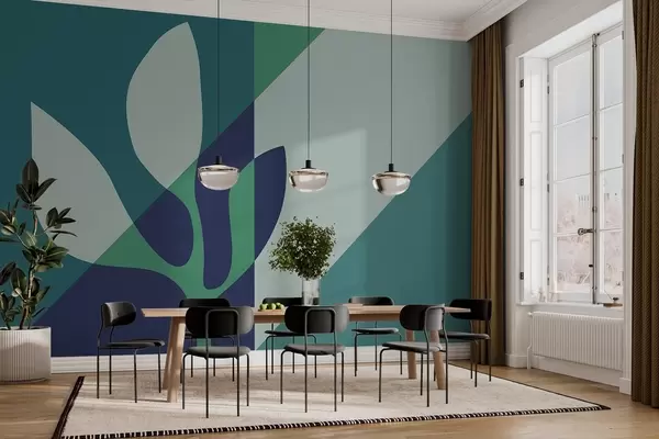 Fototapet plantă grafică abstractă pe fundal de geometrie în tonuri de albastru Nr. w04028v1