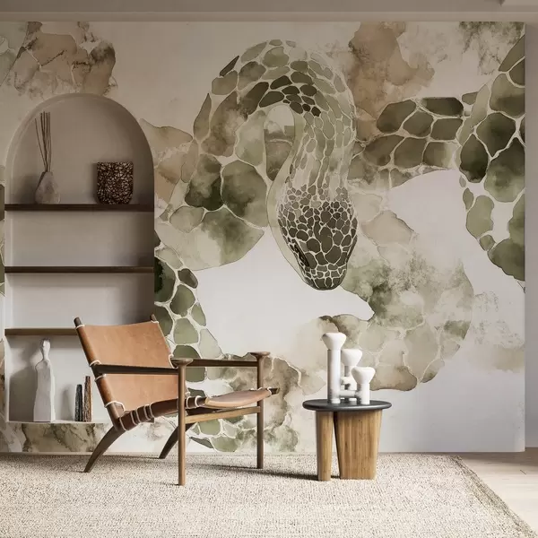 Fototapet Siluetă șarpe, stil acuarelă, culori de măsline Nr. w04113v3