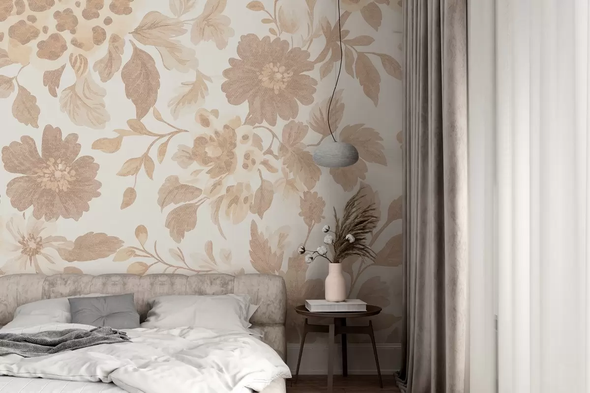 Fototapet Flori în stil boho cu imprimeu leopard, culoare bej Nr. w04114