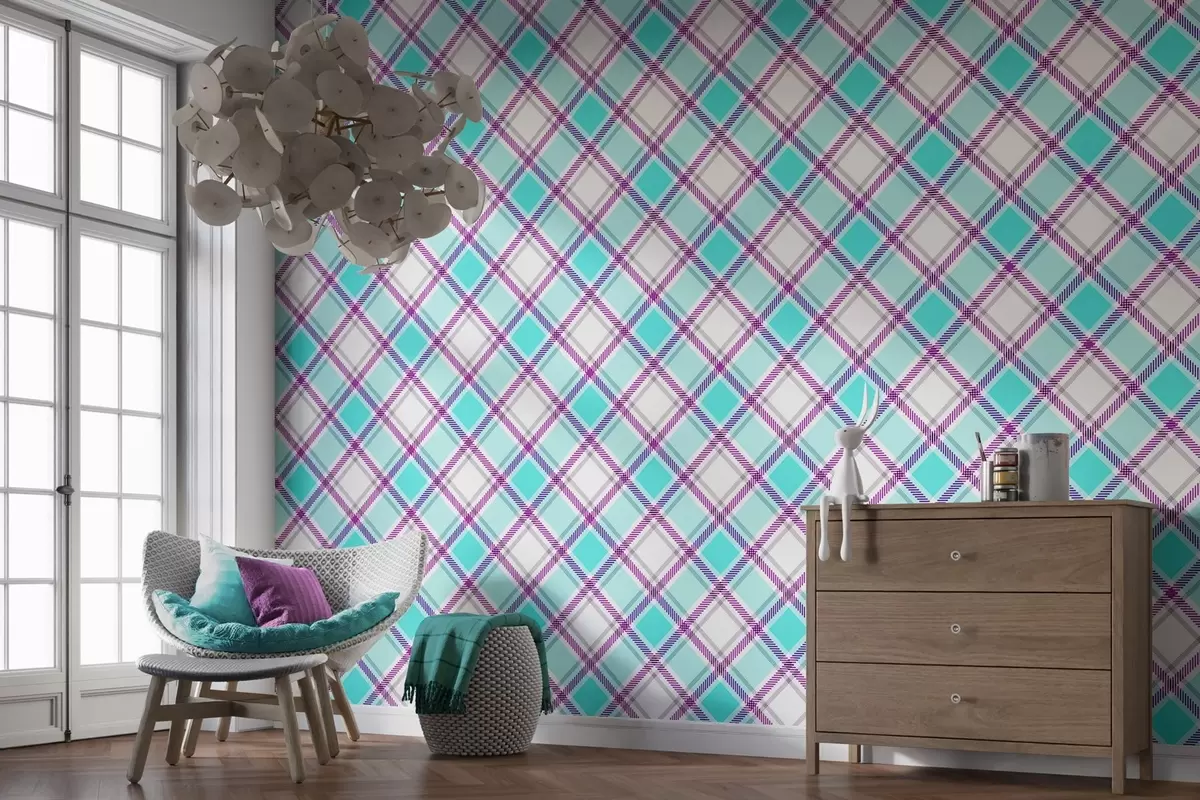Fototapet model în carouri în tonuri de albastru Nr. w04167