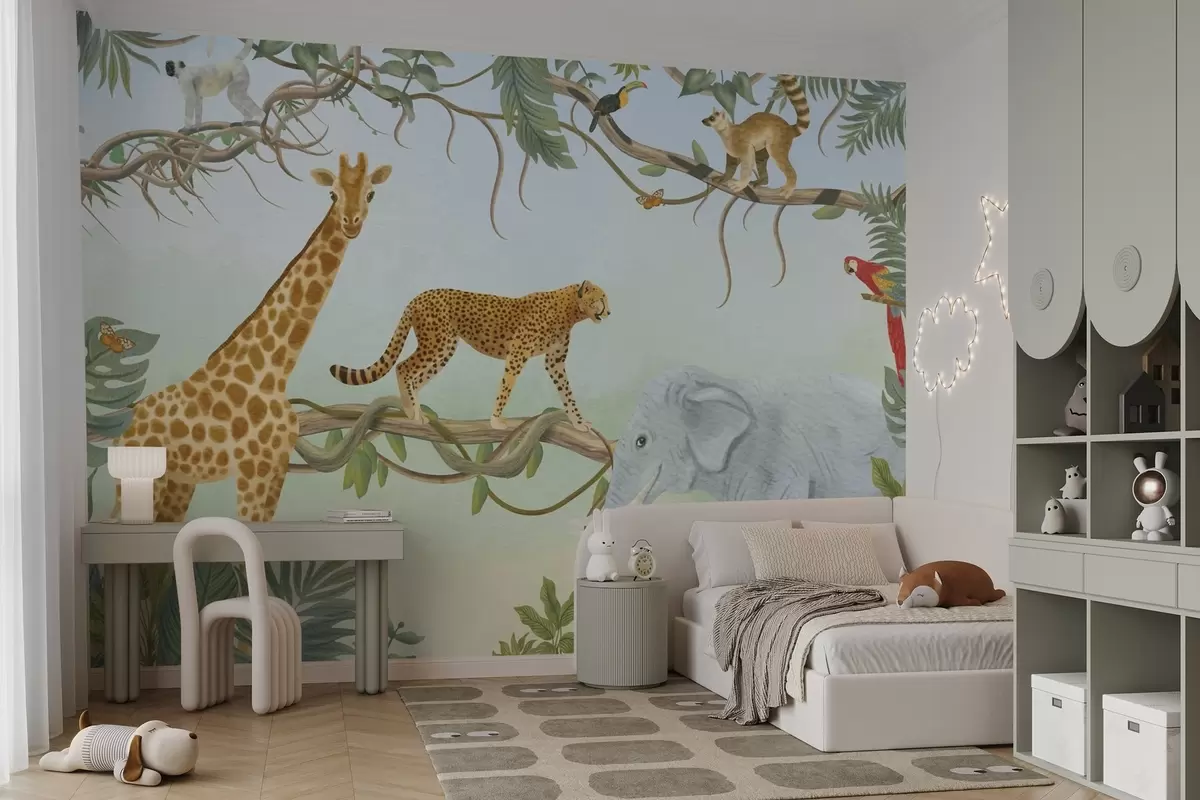 Fototapet Ilustrație din junglă cu girafă, ghepard și elefant Nr. w04194