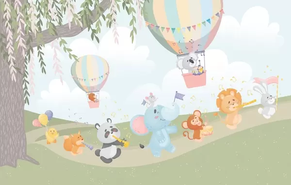 Fototapet Peisaj cu animale cântând la instrumente muzicale Nr. w04200