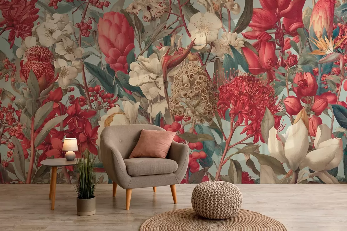 Fototapet flori tropicale texturate pe un fundal albastru Nr. w04209