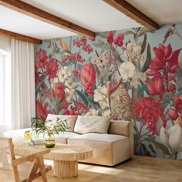 Fototapet flori tropicale texturate pe un fundal albastru Nr. w04209