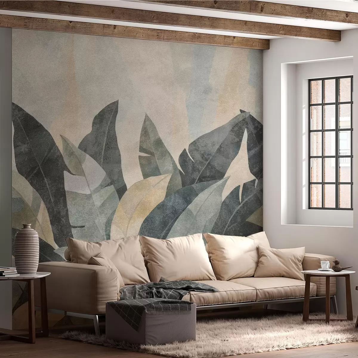 Fototapet frunze de bananier texturate în nuanțe naturale de bej, verde și gri Nr. w04285