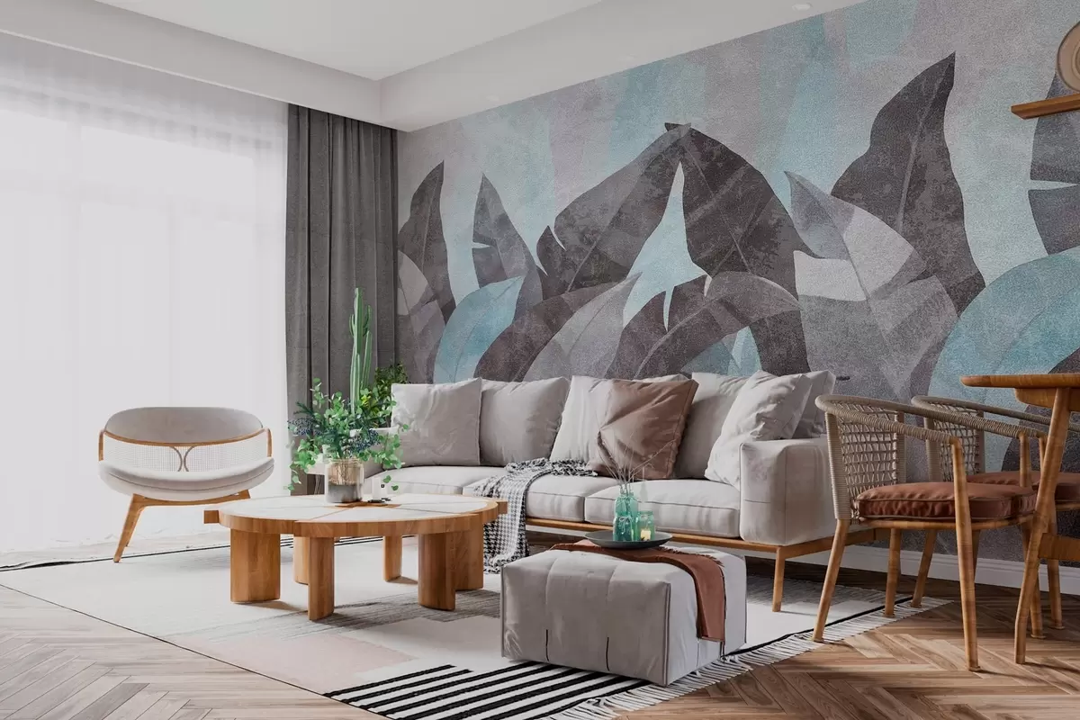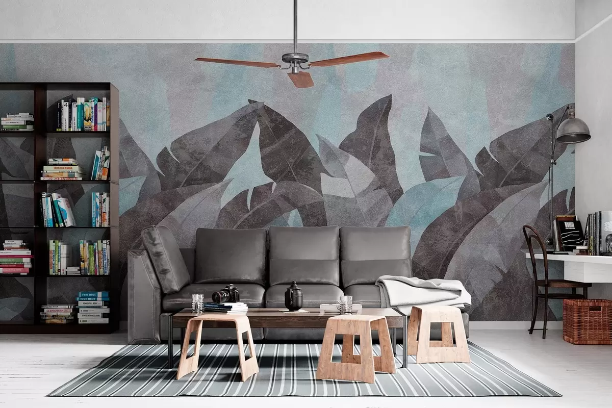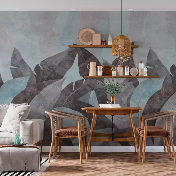 Fototapet frunze de banane texturate în nuanțe de albastru și gri Nr. w04285v2
