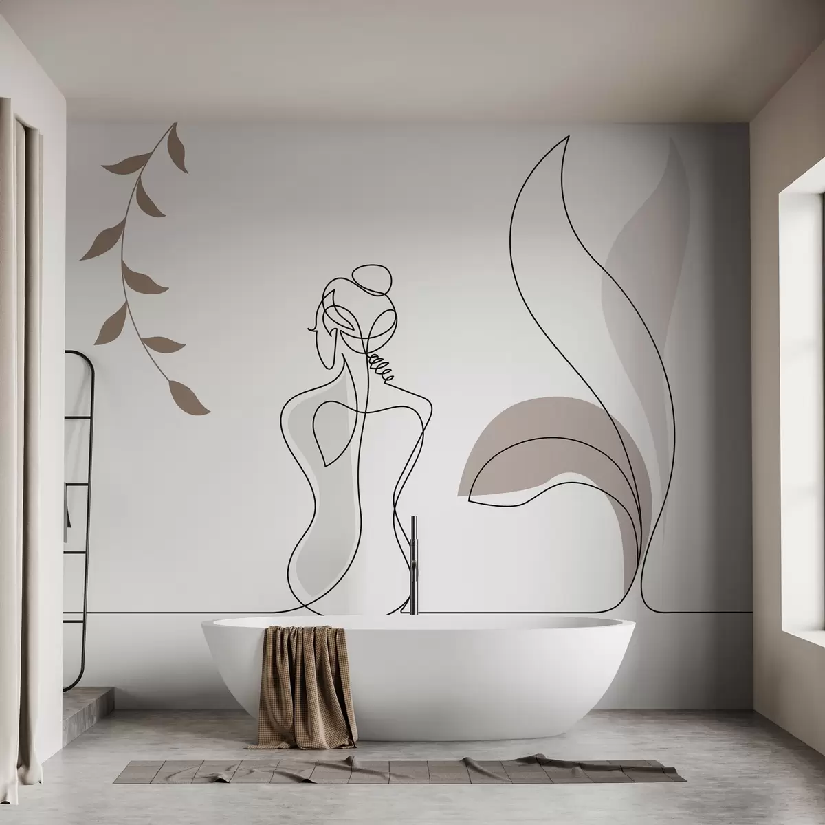 Fototapet silueta liniară a unei femei și frunze Nr. w04303