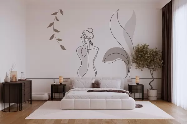 Fototapet silueta liniară a unei femei și frunze Nr. w04303