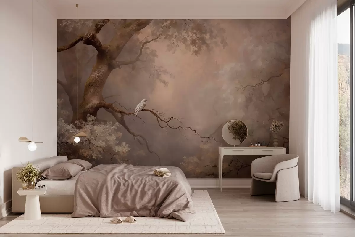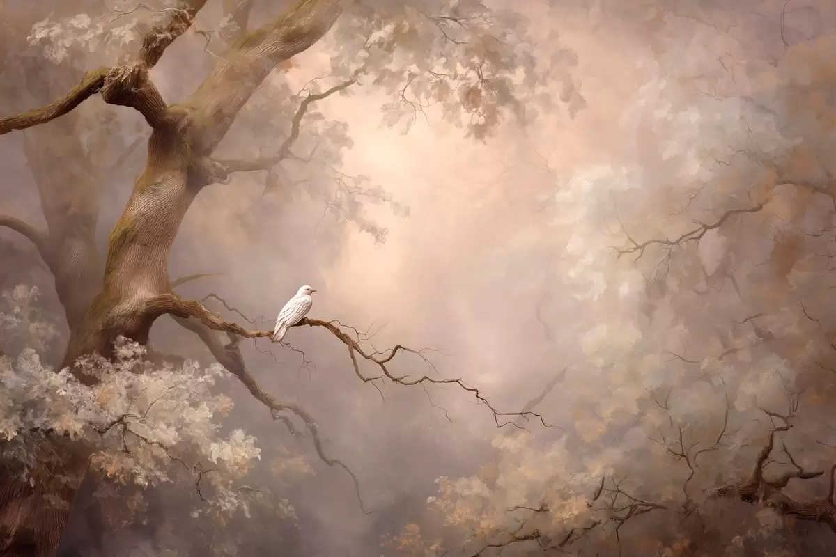 Fototapet pădure mistică cu o pasăre albă Nr. w04314