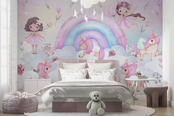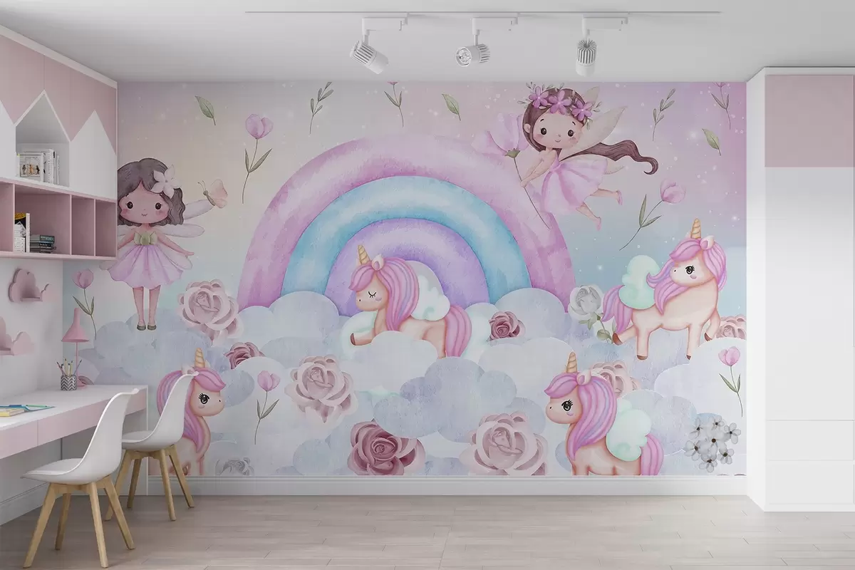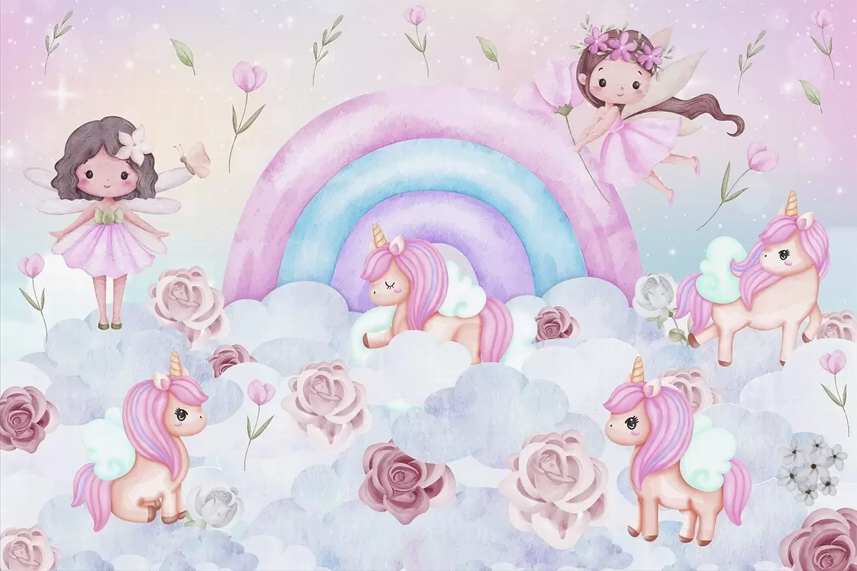 Fototapet Zâne și unicorni printre nori și curcubee Nr. w04371