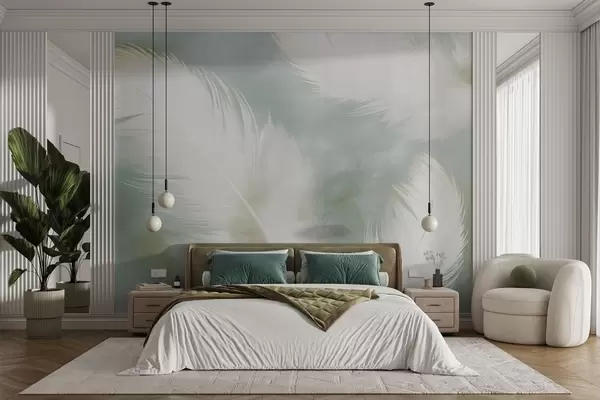 Fototapet Pene albe delicate pe un fundal moale de mentă Nr. w04399