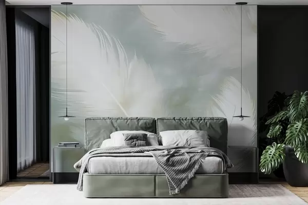 Fototapet Pene albe delicate pe un fundal moale de mentă Nr. w04399