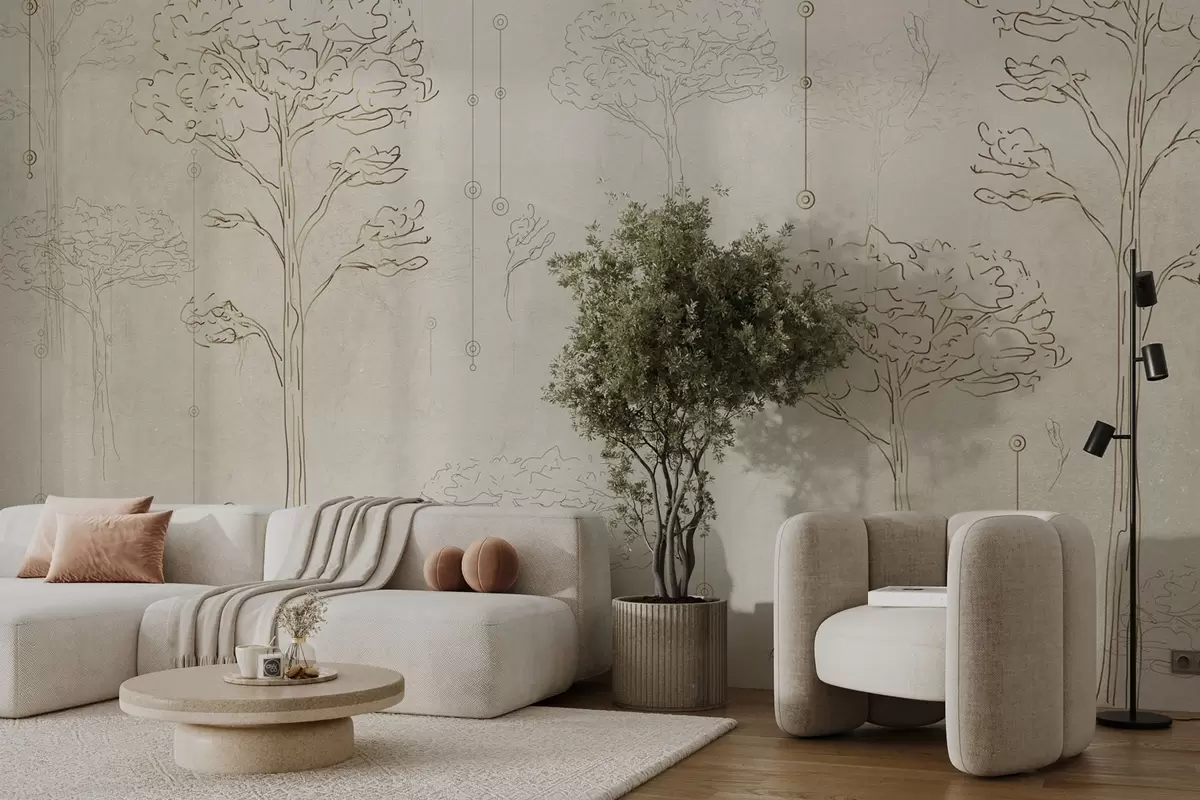 Fototapet Siluete liniare de copaci în stil minimalist Nr. w04403
