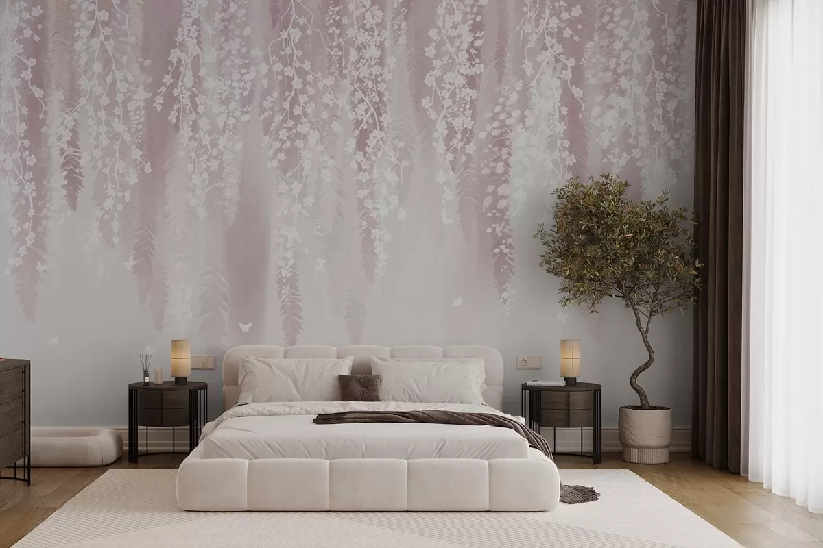 Fototapet Versiunea roz a ramurilor cu flori albe Nr. w04417v1