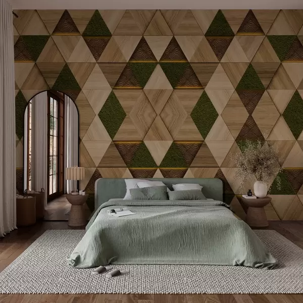 Fototapet Ornament geometric din lemn cu mușchi Nr. w04459