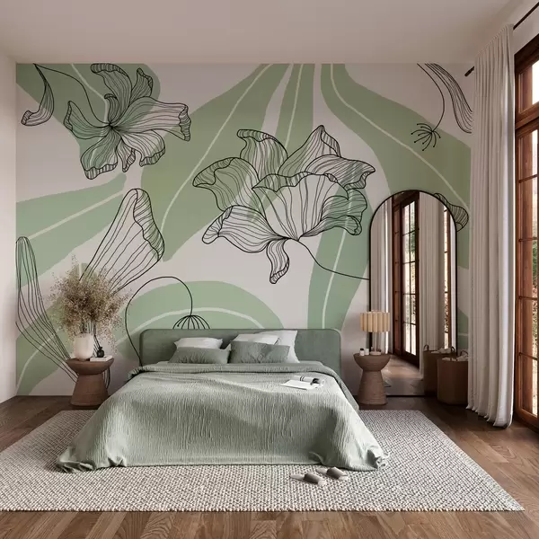 Fototapet frunze și flori abstracte în tonuri de verde Nr. w04499v1