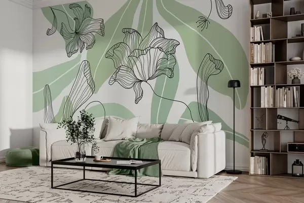 fototapet frunze și flori abstracte în tonuri de verde w04499v1