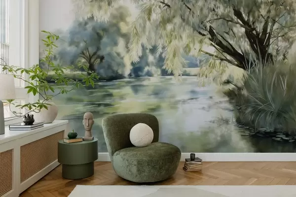 Fototapet copac în stil acuarelă deasupra lacului Nr. w04501