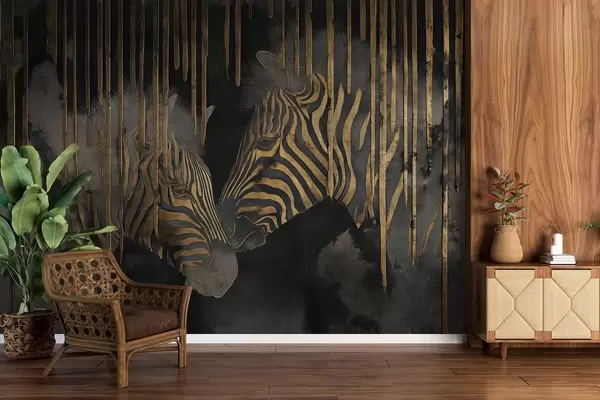 Fototapet Zebre pe fundal negru abstract Nr. w04548