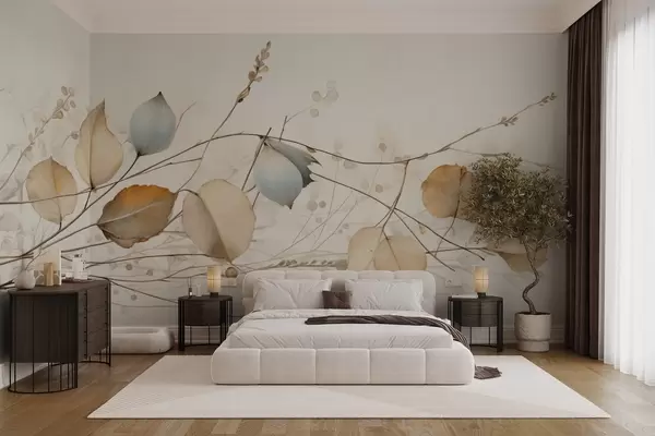 Fototapet Ramuri delicate cu frunze în nuanțe de bej Nr. w04579