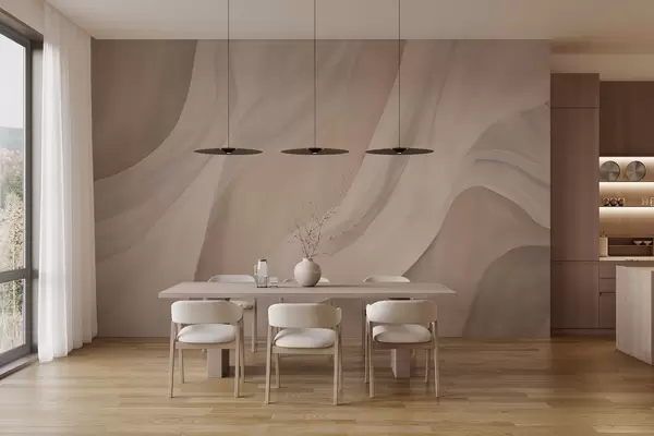 Fototapet Valuri mătăsoase bej-roz, tușe moi și fluide Nr. w04608