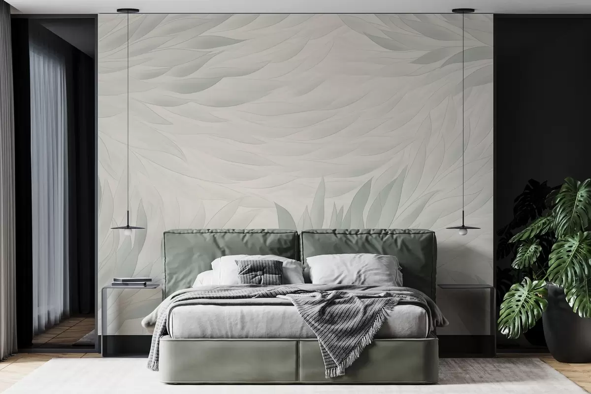 Fototapet Frunze ondulate în nuanțe delicate de verde-bej Nr. w04610v2