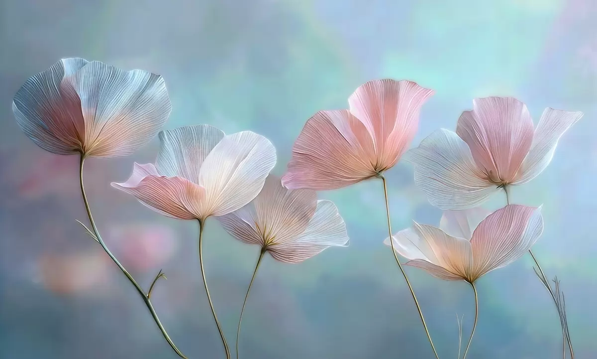 Fototapet Petale transparente în nuanțe pastelate de roz și albastru Nr. w04621
