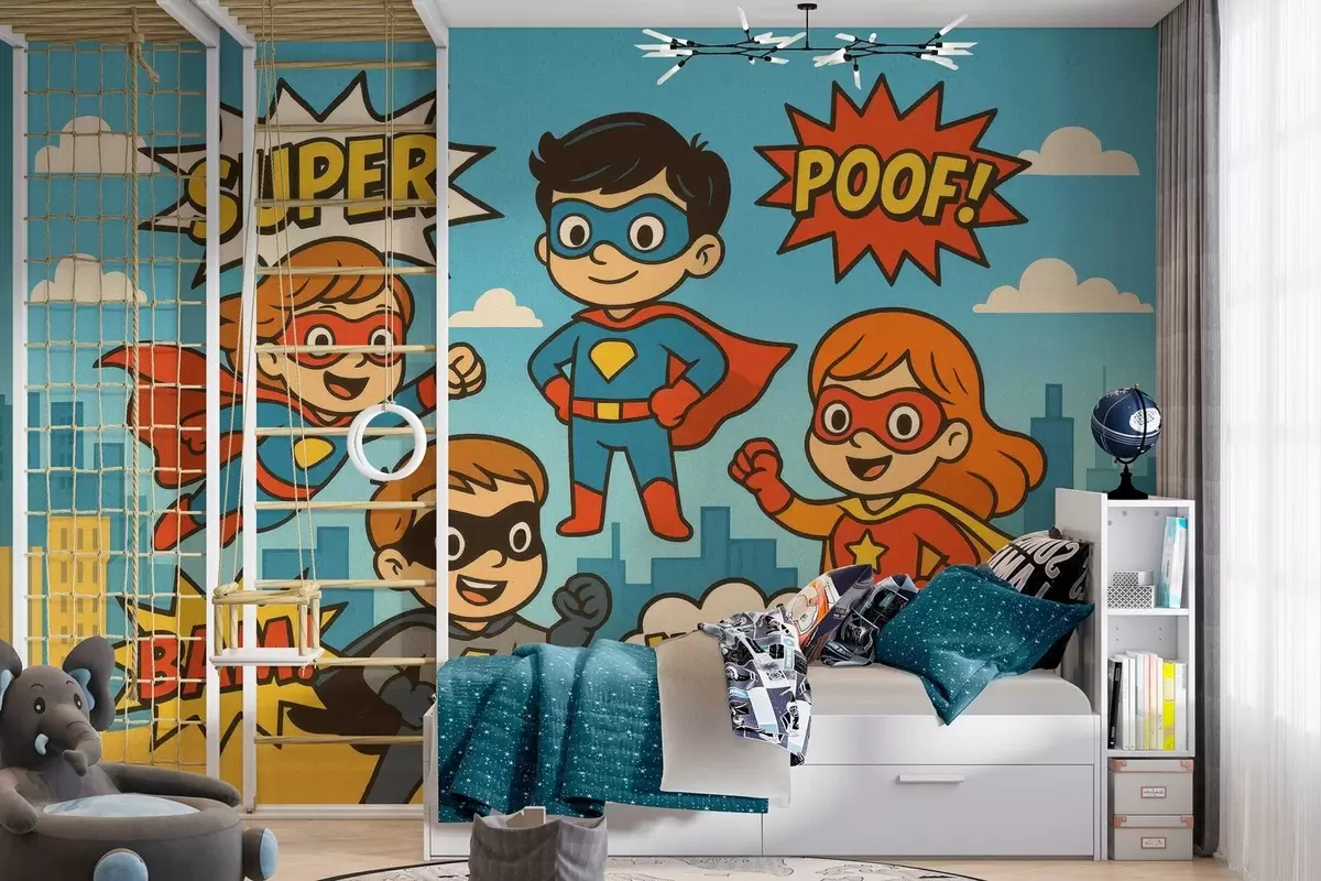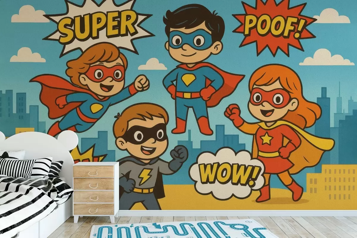 Fototapet supereroi amuzanți în stilul benzilor desenate Nr. w04625