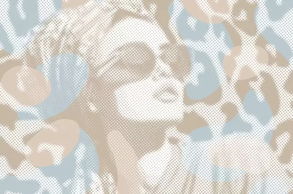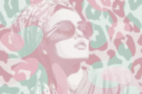 Fototapet portretul unei femei pe un fundal cu leopard, în stil punctat, în tonuri de roz și verde Nr. w04630v2