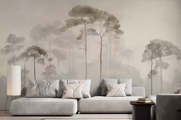 Fototapet siluete ușoare de pini în stil acuarelă Nr. w04634