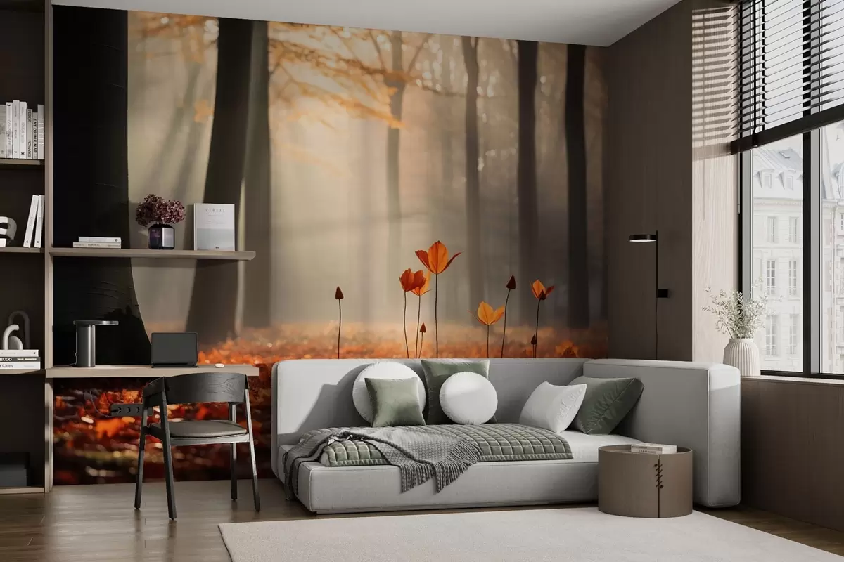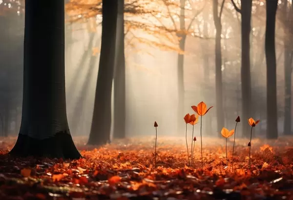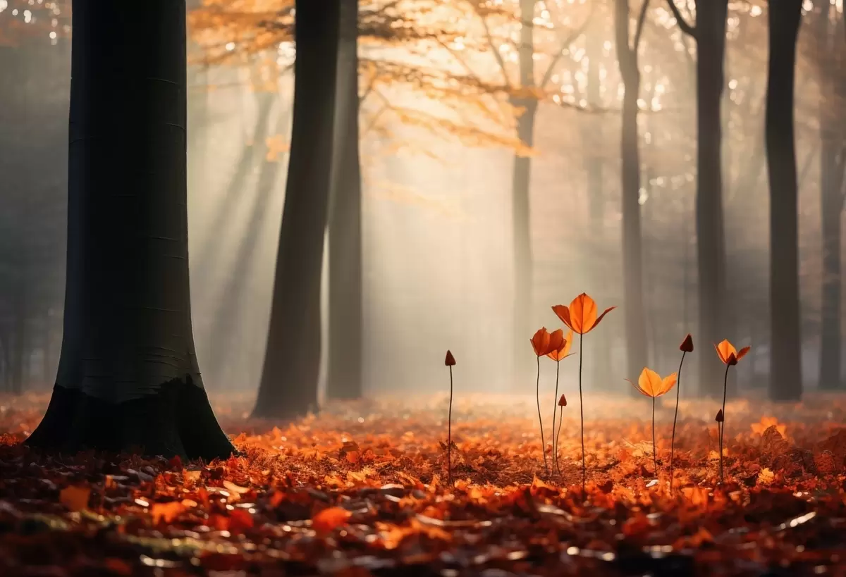 Fototapet Pădure de toamnă cu raze de soare și frunziș strălucitor Nr. w04710