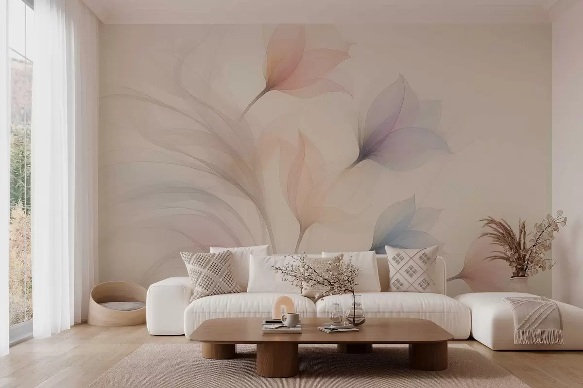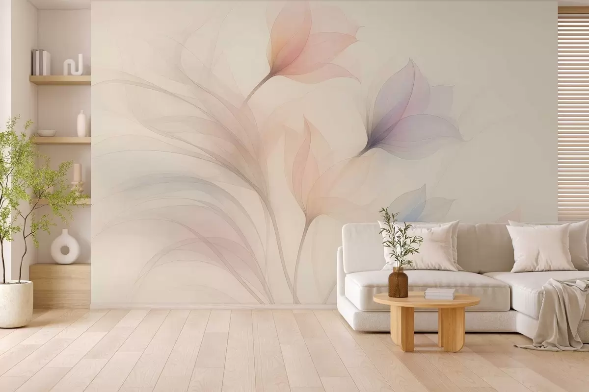 Fototapet lalele delicate, semi-transparente, pe fond bej Nr. w04754