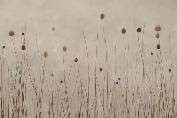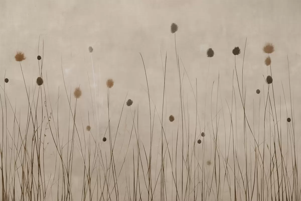 Fototapet Ierburi subțiri și capete de semințe pufoase pe un fundal bej cald Nr. w04793