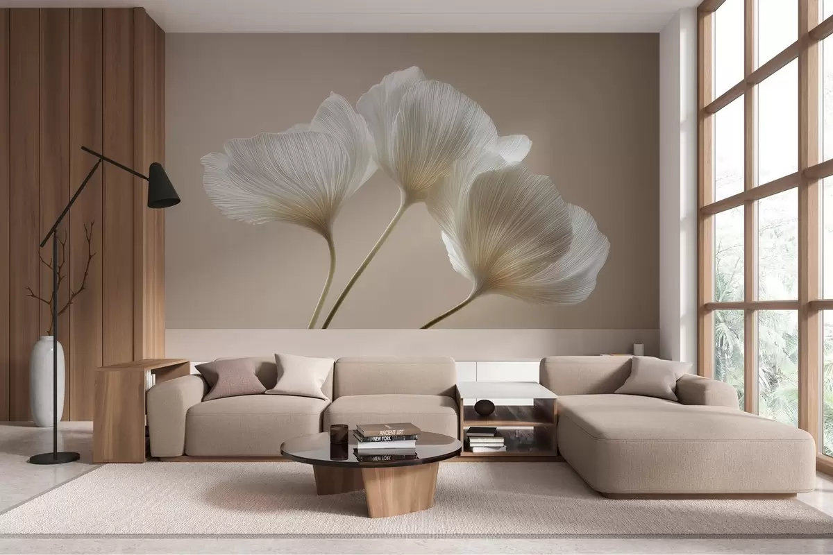 Fototapet trei flori delicate pe un fundal bej Nr. w04810