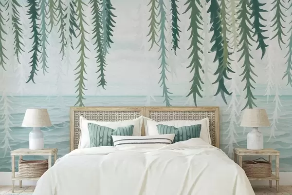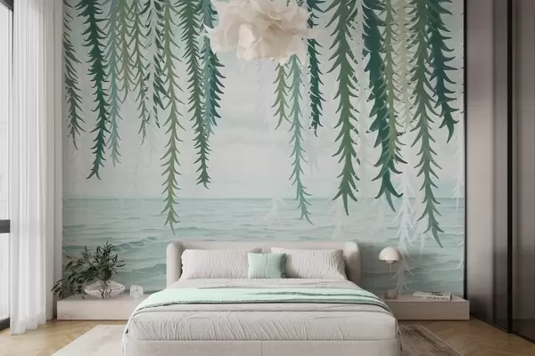 Fototapet Viță de vie delicată atârnând deasupra apei, în stil acuarelă Nr. w04830