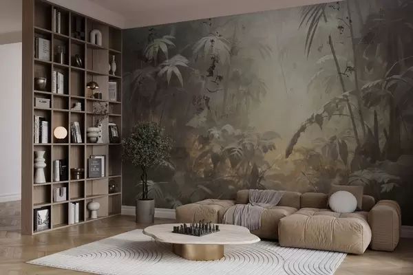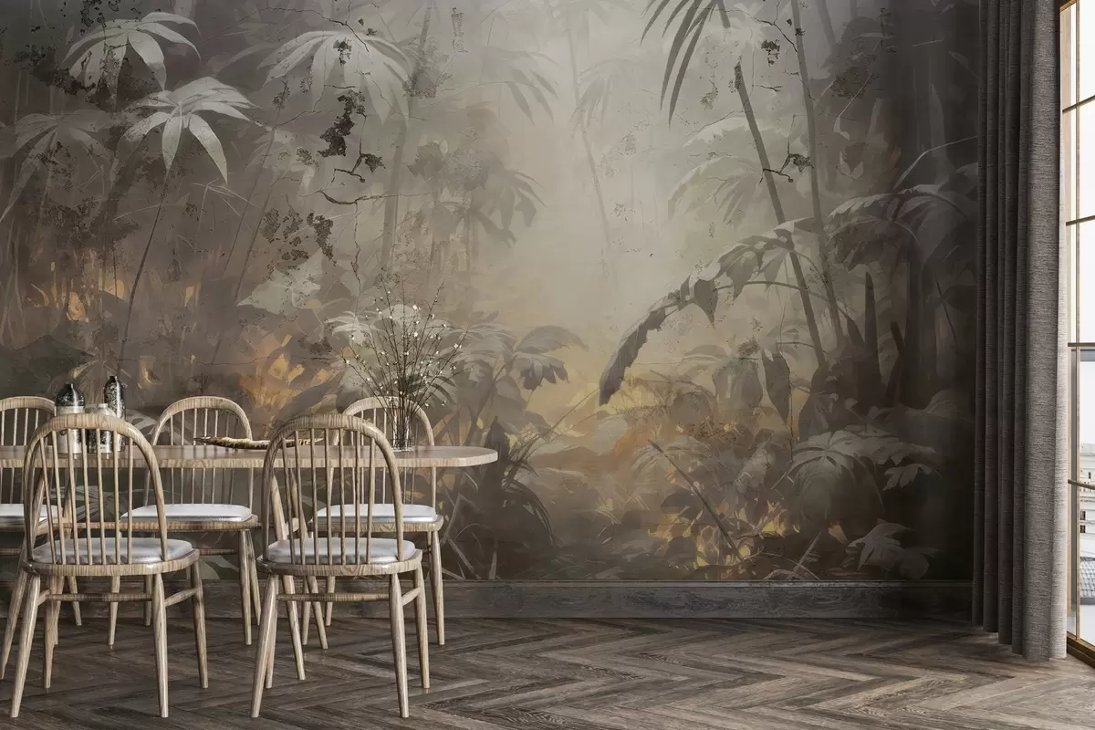 Fototapet Junglă pictată în spatele unui zid de beton murdar Nr. w04833