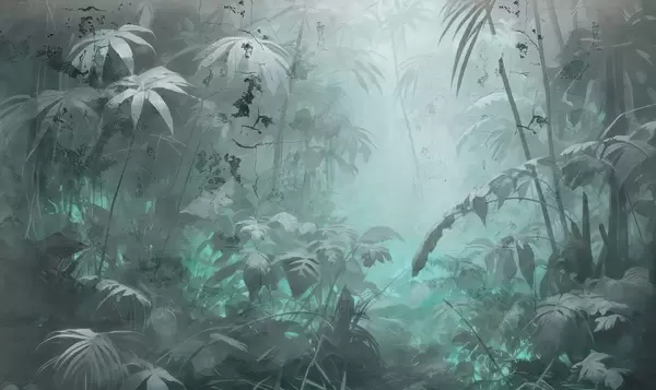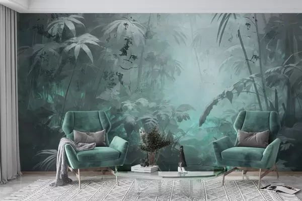 Fototapet Junglă pictată în spatele unui zid de beton murdar Nr. w04833v1
