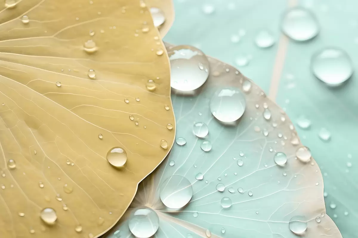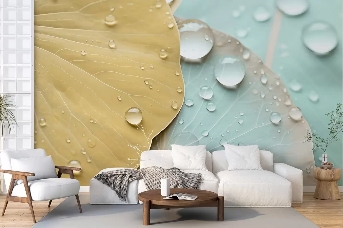 Fototapet Picături de apă pe frunze macro acuarelă Nr. w04838v1