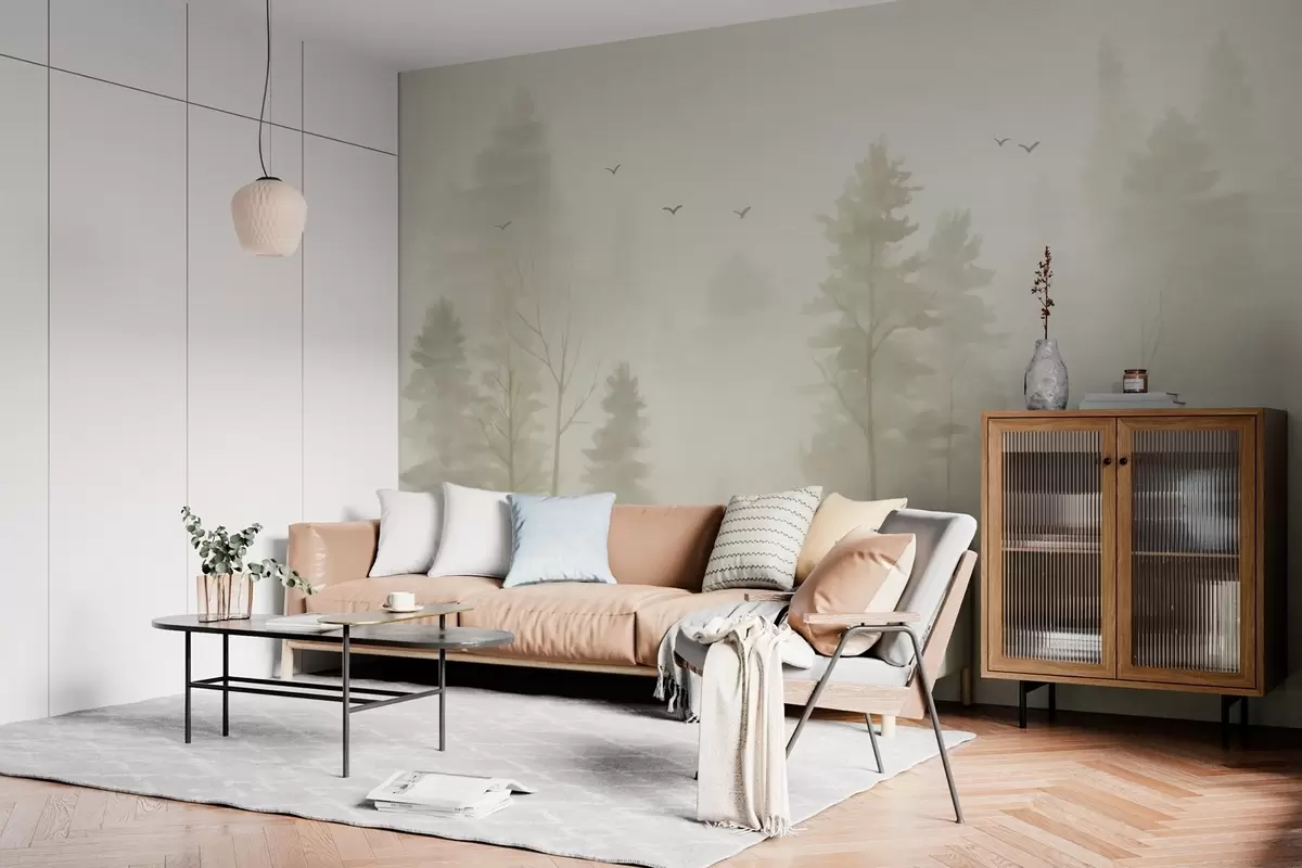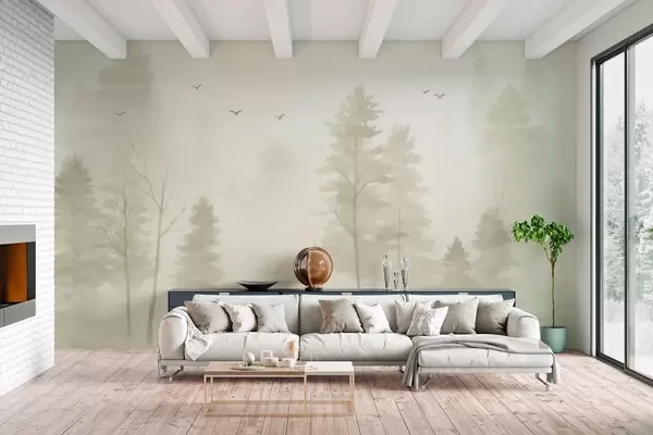 Fototapet pădure aeriană în stil acuarelă, în tonuri de bej Nr. w04872