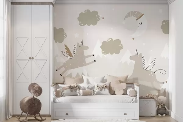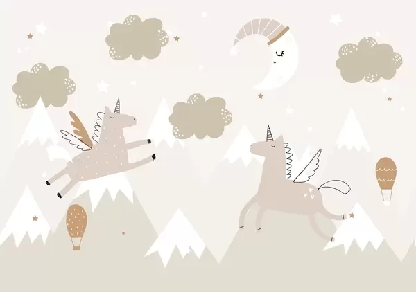 Fototapet Luna adormită, unicorni și baloane Nr. w04886