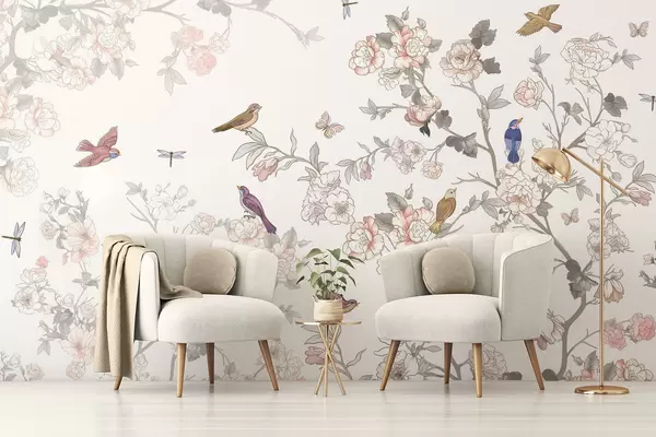 Fototapet Păsări lângă ramuri cu flori Nr. w04939