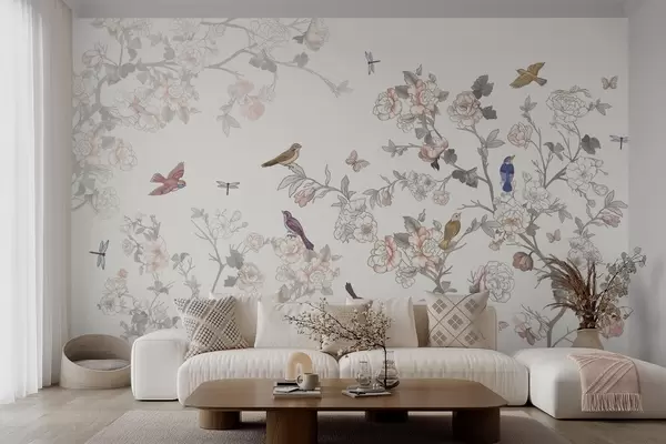 Fototapet Păsări lângă ramuri cu flori Nr. w04939