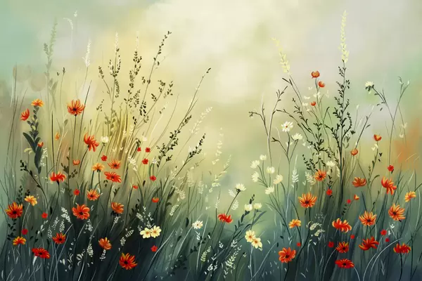 Fototapet Flori și ierburi de câmp în stil pictural delicat Nr. w05015