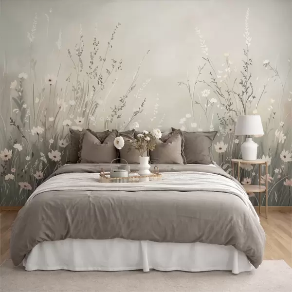 Fototapet Peisaj de pajiște cu flori albe și ierburi delicate Nr. w05015v1