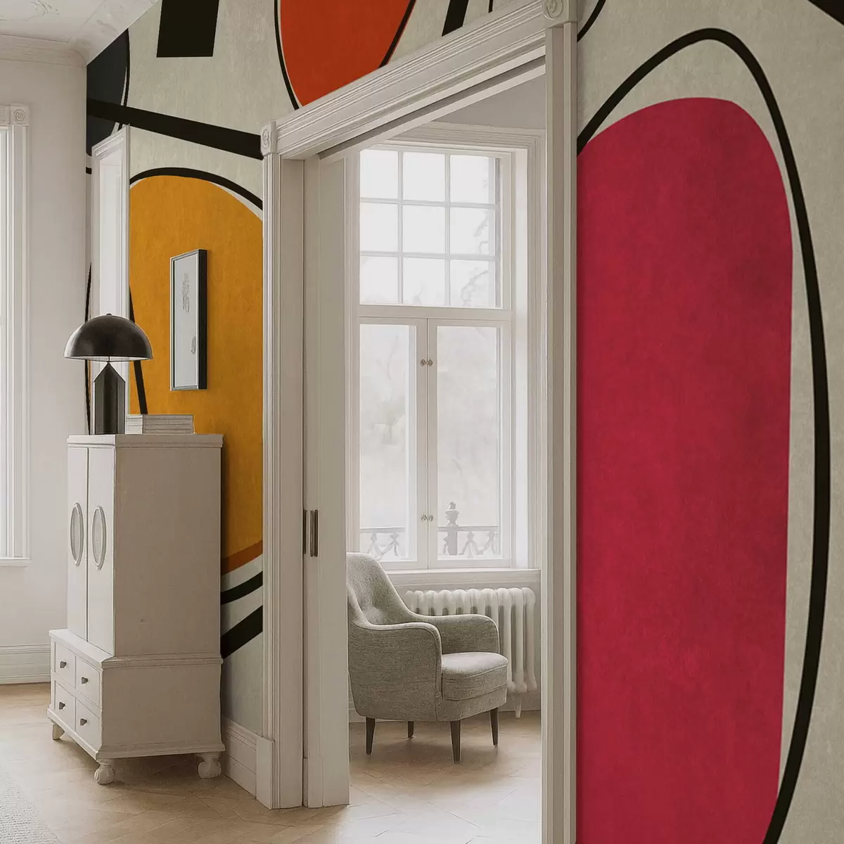 Fototapet Forme abstracte și linii cu câmpuri de culori îndrăznețe Nr. w05017
