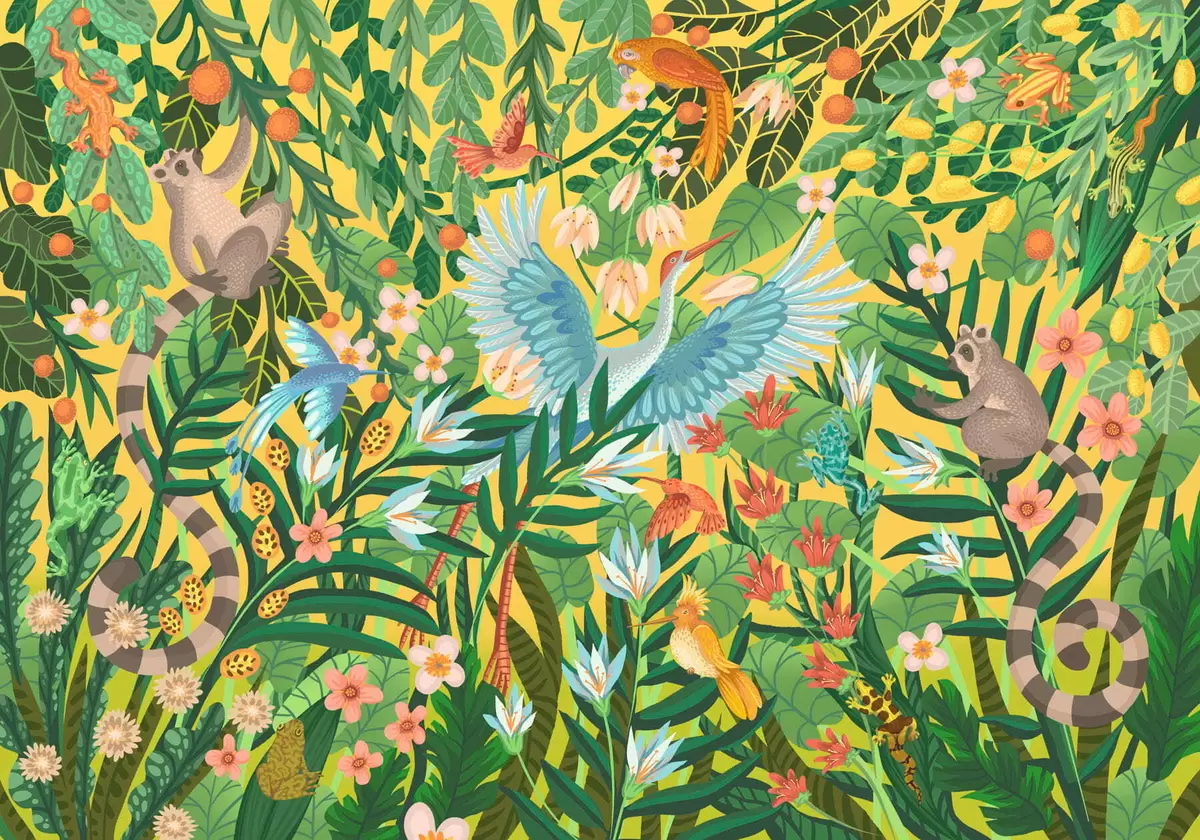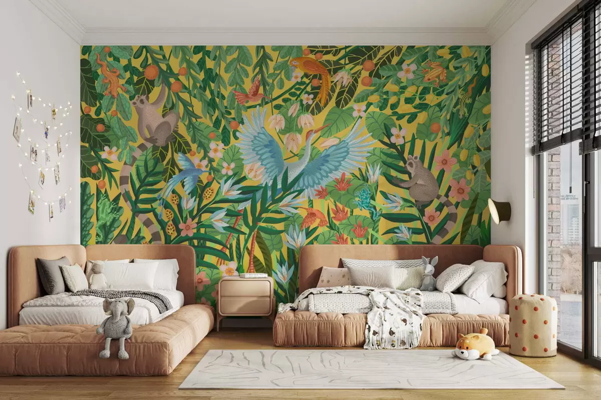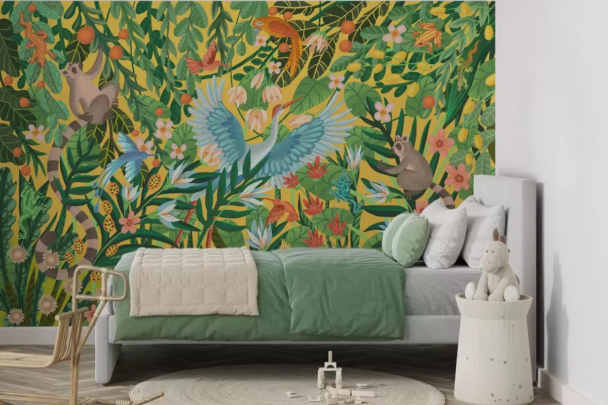 Fototapet Scena luminoasă cu păsări și animale în vegetație densă Nr. w05024v1